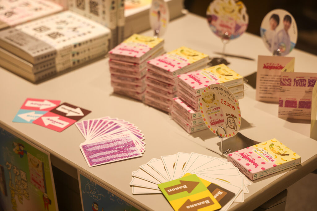 ▲受付には、MEdit Labが制作した、病理診断を体感できるカードゲーム「バナオーマ」や、MEdit Lab代表の小倉先生の新刊『細胞を間近で見たらすごかった』の販売も