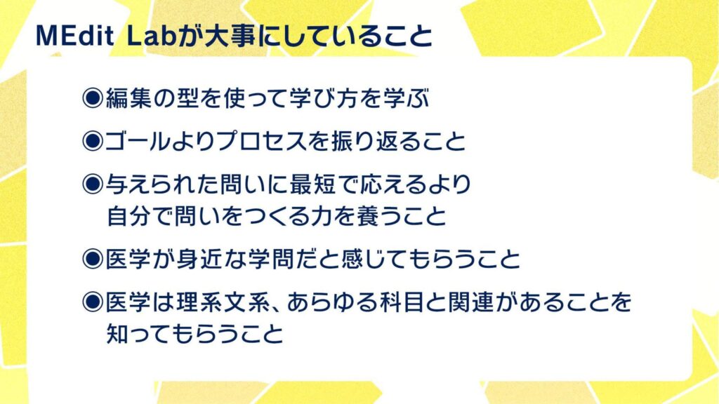 「MEdit Labで大事にしているのは、ゲームを完成させるということより、そのプロセスを振り返ることです」。